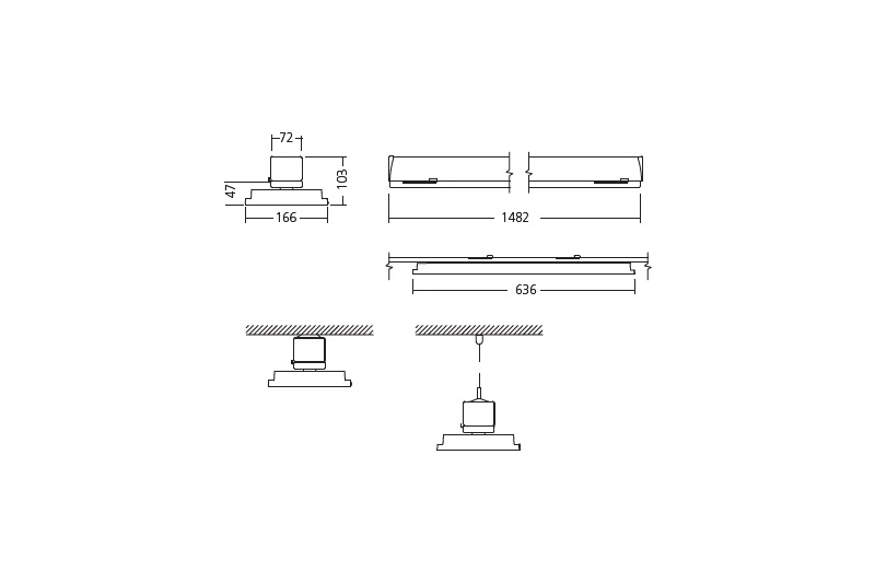 | Montage | Deckenmontage (Modul zu unserem PRESTIGE Tragschienensystem |