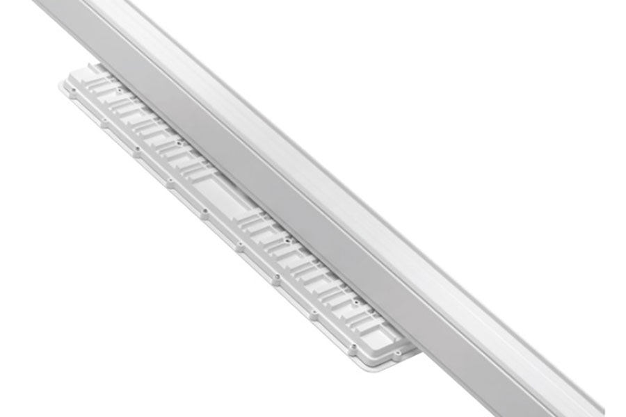 Der Hallentiefstrahler für unser Schienensystem PRESTIGE. Integrierbar in unser Schienensystem, erweitert diese Leuchte die Anwendungen des LED-Lichtbandes auch bei extrem hohen Hallen. Durch die vielen verschiedenen Linsen kann sowohl in der Fläche, in den Gängen oder aber direkt über einem Arbeitsplatz schnell und direkt auf die örtlichen Gegebenheiten eingegangen werden. Durch das werkzeuglose montieren dieses Lichtband-Elementes und der enormen Effizienz ist die Leuchte beliebt als Erweiterung in unserem LED-Lichtband.